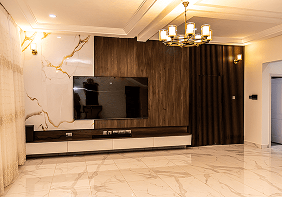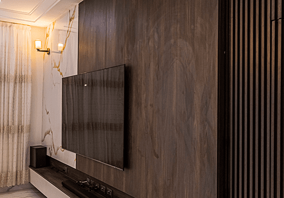 Luxury Wall Cladding & Media Design From sleek, high-gloss media walls to textured feature panels, we transform living spaces with layered finishes, warm wood tones, and integrated lighting merging technology, texture, and elegance.