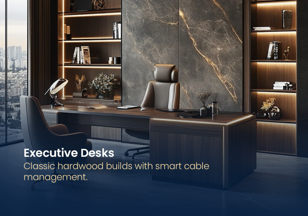 Our custom and ready-to-ship pieces are crafted to optimize comfort, storage, and elegance — whether you're outfitting a corporate space or home office.