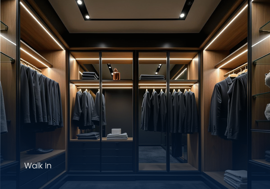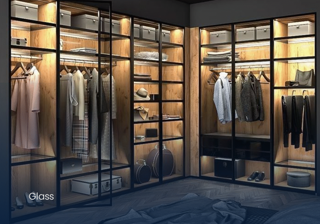 Choose from hinged or sliding doors, open-shelf layouts, or walk-in wardrobe setups with personalized compartments, lighting, and finishes.